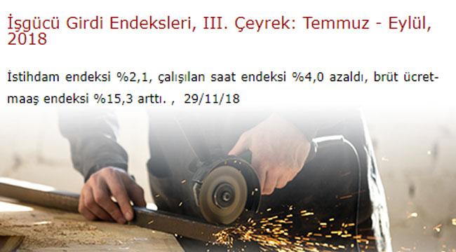 Sanayi, inşaat ve ticaret-hizmet sektörleri toplamında takvim etkilerinden arındırılmış brüt ücret-maaş endeksi, 2018 yılı III. çeyreğinde bir önceki yılın aynı çeyreğine göre %15,3 arttı. Alt sektörler incelendiğinde, endeks; sanayi sektöründe %18,7, inşaat sektöründe %11,7 ve ticaret-hizmet sektörlerinde %13,9 arttı.