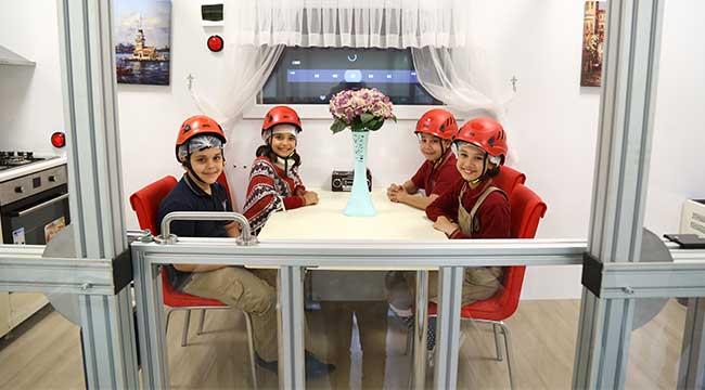 Depremin nasıl oluştuğu, deprem sırasında ve sonrasında neler yapılması gerektiğinin uygulamalı olarak anlatıldığı Deprem Deneyim Odası’nda deprem simülasyon sistemi ile ülkemizde ve dünyada olmuş bazı hasar verici depremler gerçeğe yakın olarak simüle ediliyor.