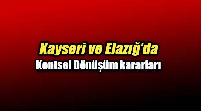 Çevre ve Şehircilik Bakanlığı tarafından Türkiye genelinde sürdürülen Kentsel Dönüşüm çalışmaları kapsamında projelerndirme ve riskli alan ilanları hızla devam ediyor. Bu çerçevede Kayseri ilinde bazı alanlar riskli alan olarak ilan edilirken, Elazığ ilinde ise bazı alanların Kentsel Dönüşüm ve Gelişim Proje Alanı olarak ilan edildi. Karar Resmi Gazete ile duyuruldu.