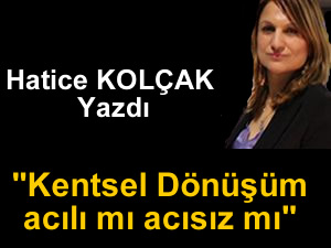 Kentsel Dönüşüm acılı mı acısız mı Sayın Başbakan iki gün önce, ustalık dönemine girerken çok önemli bir adım attıklarını, Çevre ve Şehircilik Bakanlığını kurduklarını ifade etti ve 'Şimdi gideceğiz gerekirse evleri yıkayacağız. Bunun yetkisini aldık mı aldık. Yasal düzenlemeleri buna göre, kentsel dönüşüm değişimle beraber yaptık, yapıyoruz, yapacağız" ve "Onun için diyoruz ki bizim işimizi, tüm milletime sesleniyorum, kolaylaştırın. Biz sizleri sokakta bırakmayız ama işimizi kolaylaştırın. Çünkü biz sizin yavrularınızın ayaklarının toprağa, çime değeceği parklar yapabilelim. Söylemek istediği şey çok açık olmakla beraber biraz da bu kentsel dönüşüm acılı olacak gibi geldi bana..Çünkü tasarı da yıkım konusu çok açık bu konuda vatandaşa insiyatif verilmeyek.