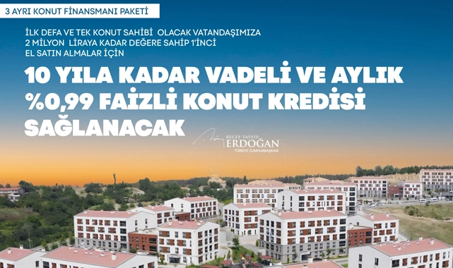 İlk defa ev sahibi olacakları yakından ilgilendiren ve Cumhurbaşkanı Recep Tayyip Erdoğan tarafından duyurulan 10 Yıl vadeli 0.99 faizli kredi desteği ile alakalı ayrıntılar paylaşıldı. Cumhurbaşkanı Erdoğan'ın canlı yayında açıkladığı konut müjdesi hakkında detaylar gelmeye devam ediyor.