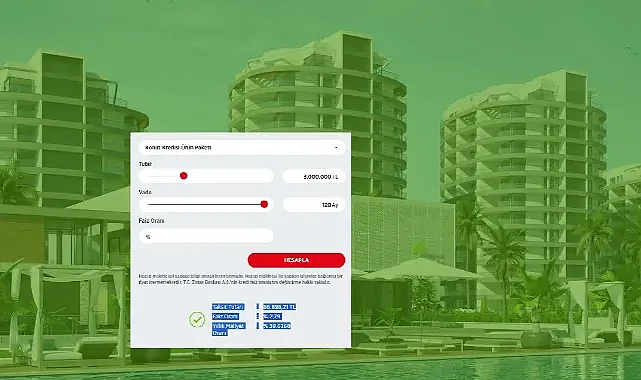 - Halkbank: Faiz %3,40, Aylık Taksit 69.253 TL, Toplam Ödeme 8.332.928 TL