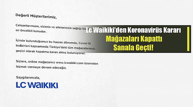 Türkiye'nin koronavirüs vaka sayısında yaşanan artış sonrasında şirketler personellerine yönelik önemli tedbir almaya başladı. Dev şirketler evde çalışma izni verirken, bazı şirketler ise dükkanlarını kapatma kararı aldı. Türkiye'nin tekstil ve perakende alanında dev mağazalarından biri olan LcWaikiki radikal bir kararla tüm mağazalarını koronavirüs gerekçesiyle kapatma kararı aldı. Şirket satışlarına internet üzerinden deam etme kararı aldı.