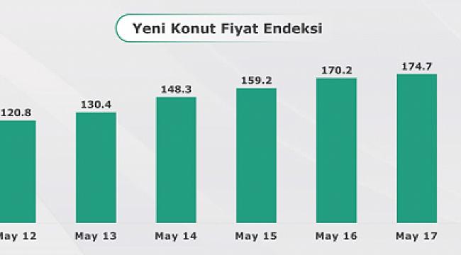 Yeni Konut Fiyat Endeksi’nde, Mayıs ayında bir önceki aya göre 1+1 konut tipinde %0.16 oranında artış, 2+1 konut tipinde %0.21 oranında artış, 3+1 konut tipinde %0.21 oranında nominal artış ve 4+1 konut tipinde %0.06 oranında nominal artış yaşandı.