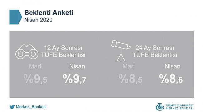 2020 yılı Nisan ayı anket döneminde, katılımcıların 24 ay sonrasına ilişkin olasılık tahminleri değerlendirildiğinde, TÜFE'nin ortalama olarak yüzde 16,1 olasılıkla yüzde 7,00 - 7,99 aralığında, yüzde 34,2 olasılıkla yüzde 8,00 - 8,99 aralığında, yüzde 25,5 olasılıkla yüzde 9,00 - 9,99 aralığında, yüzde 10,6 olasılıkla ise yüzde 10,00 - 10,99 aralığında artış göstereceği öngörülmektedir.