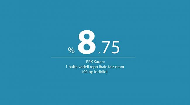Para Politikası Kurulu (Kurul), politika faizi olan bir hafta vadeli repo ihale faiz oranının yüzde 9,75’ten yüzde 8,75’e indirilmesine karar vermiştir.