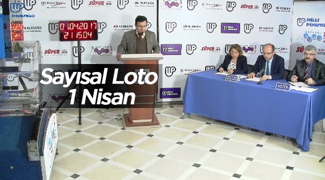 Her hafta milyonların oynadığı Sayısal Loto sonuçları 1 Nisan gecesi yapılan çekilişle belli oldu. MPİ Sayısal Loto çekilişi noter huzurunda gerçekleştirildi bu hafta son haftalarda olduğu gibi yine devir oldu.