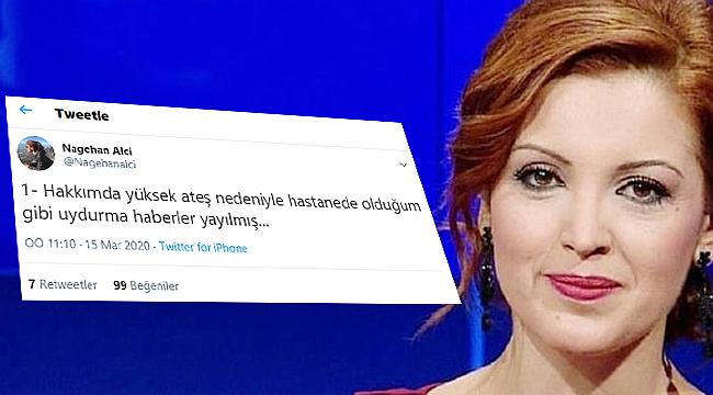 Habertürk köşe yazarı ve televizyon yorumcusu Nagehan Alçı'nın 'yüksek ateş nedeniyle hastanede tedavi altına alındı' iddialarına ilişkin açıklama geldi.