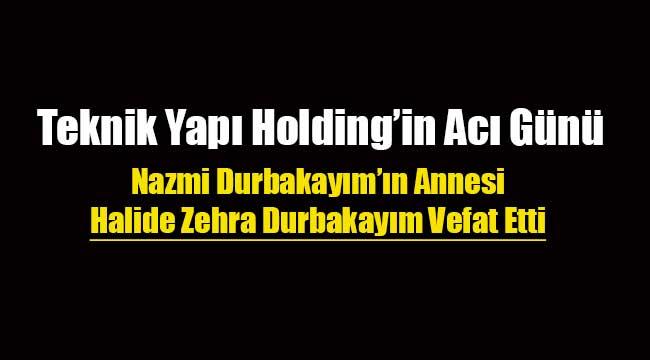 Teknik Yapı Yönetim Kurulu Başkanı Nazmi Durbakayım’ın Anneleri Sayın HALİDE ZEHRA DURBAKAYIM hakkın rahmetine kavuşmuştur. Bir asır boyunca çevresine sevgi ve merhamet dağıtan Merhumeye Allah’tan rahmet, kederli ailesine ve sevdiklerine başsağlığı dileriz.