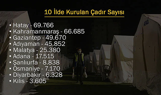 Depremzede illerimizde şu ana kadar kurulan çadır sayısı;