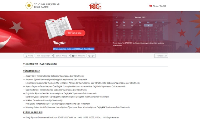 01 Temmuz 2022 Tarihli ve 31883 Sayılı Resmî Gazete bugün yayımlanırken çok sayıda önemli yönetmelik ve karar resmen yürürlüğe girdi. işte bu sabah yayımlanan 1 Temmuz Resmi Gazete detayları.
