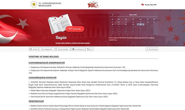 10 Mart 2023 tarihli Resmi Gazete kararları