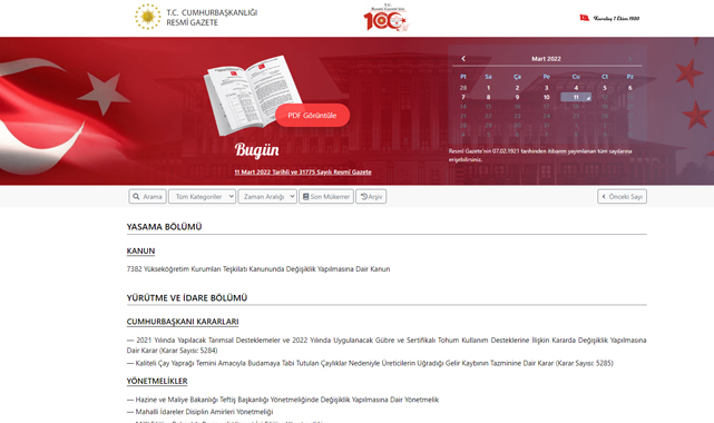 11 Mart 2022 Tarihli ve 31775 Sayılı Resmî Gazete