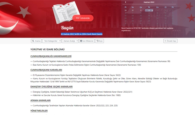02 Haziran 2022 Tarihli ve 31854 Sayılı Resmî Gazete bu sabah yayımlanırken, kritik kararlar resmen yürürlüğe girdi.