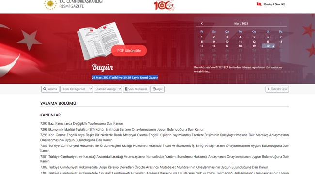 20 Mart 2021 Tarihli ve 31429 Sayılı Resmi Gazete