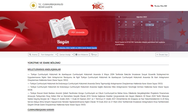 05 Ağustos 2022 Tarihli ve 31914 Sayılı Resmî Gazete yürürlüğe girerken, milyonları ilgilendiren kritik yönetmelik ve kararlar bugün resmen yürürlüğe girdi. Peki bu sabah yayımlanan Resmi Gazete'de hangi kararlar yer aldı?