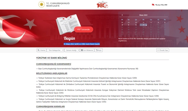 07 Nisan 2022 Tarihli ve 31802 Sayılı Resmî Gazete