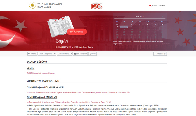 08 Mart 2022 Tarihli ve 31772 Sayılı Resmî Gazete