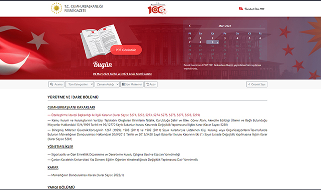Resmi Gazete'de bu sabah hangi kararlar yer aldı? Merak edenler için işte 09 Mart 2022 Tarihli ve 31773 Sayılı Resmî Gazete