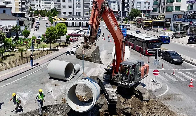Yağmur suyu hatlarında 600 mm ile 2000 mm arasında değişen çaplarda borular döşeniyor.