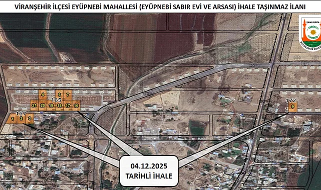 Şanlıurfa Büyükşehir Belediyesi, Viranşehir ilçesine bağlı Eyüp Nebi Mahallesinde yer alan 13 adet Sabır Evi ve Arsa için ihale açtığını duyurdu. Açık artırma yöntemiyle ihalede satılacak arsaların en uygunu 870 bin TL ne pahalısı ise 1 milyon 325 bin TL'den satılacak.