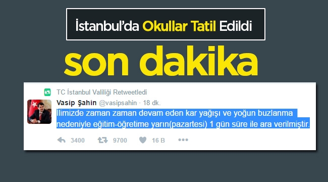 İşte twitter hesabı üzerinden yapılan "Okullar Tatil" açıklaması