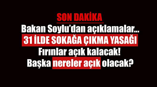 Canlı yayında açıklamalarda bulunan Bakan Soylu, 'Özellikle çoklu zamandan beri hem tüm çağrılar, evde kalmak üzere, su istasyonları, hastaneler, eczaneler, PTT, kargo, fırınlar açık durumda olacak. Vatandaş temel ihtiyaçlarını almak için sınırlı olan yerlerden ihtiyaçlarını gidermek için çıkmıştır. Bu salgının bir şekilde daha fazla yayılmasını önlemek için bu karar alınmıştır. Sokağa çıkma yasağını ihlal edenlerin Pandemi döneminde alınan karar geriği para ve hapis cezasına kadar gereken cezalara çarptırılacaklardır. ' dedi.