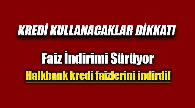 Bugünden itibaren kullandıracağı ticari kredilerin faiz oranlarını yıllık yüzde 13 – 15,5 aralığına indirdiğini açıklayan Halkbank, 60 aya kadar vade imkânı sunduğu ihtiyaç kredilerinde faiz oranını maaş müşterileri için aylık yüzde 1,25’e, maaş dışı müşterileri için ise aylık yüzde 1,35’e düşürdüğünü duyurdu. 500 bin TL ve üzerindeki konut kredilerinde faiz oranını aylık yüzde 1,19’a indiren Halkbank, 500 bin TL’nin altındaki konut kredilerinde ise faiz oranını aylık yüzde 0,99 olarak uygulamaya devam edeceğini açıkladı.