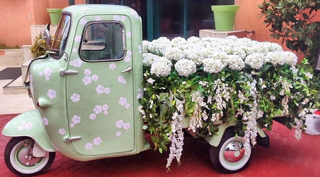 Yeşil araba Afrika papatyasından, ipek çiçeğine kadar birbirinden renkli 12 çiçeğin tohumunu komşularına hediye ediyor!
