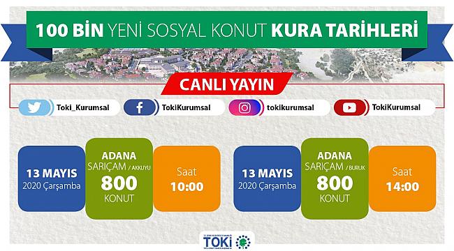 Bugün (13.05.2020 Çarşamba) Adana Sarıçam Akkuyu 800 konut ve Buruk 800 konutluk projelerinin kurası noter huzurunda canlı yayınla internet üzerinden yapılacak.