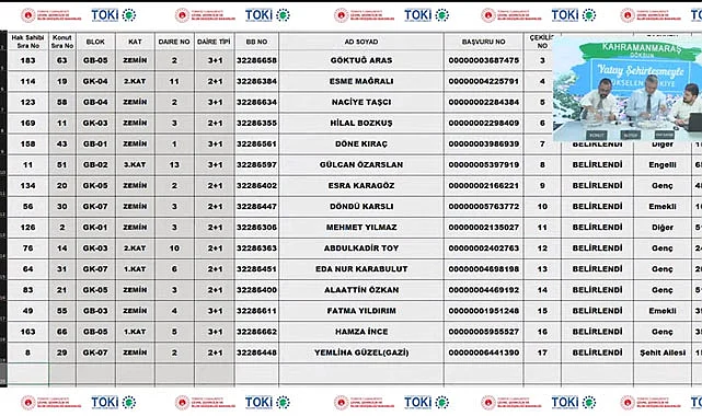 TOKİ Kahramanmaraş Göksun 2+1 kura sonuçları, TOKİ Kahramanmaraş Göksun 3+1 kura sonuçları isim sorgulama işlemini altta verilen bağlantıdan canlı yayını tekrar inceleyebilir, kura sonuçları isim listesini öğrenebilirsiniz.