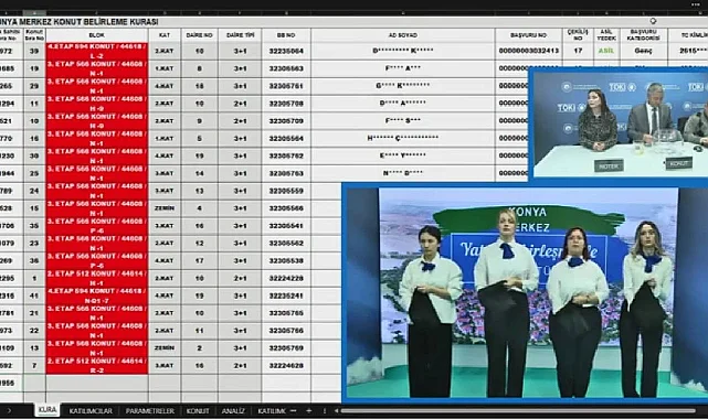 TOKİ Konya Merkez konut projesi kapsamında hayata geçirilen 46 daire için hak sahipliği konut belirleme kura çekilişi sonuçları canlı yayında Noter huzurunda yapıldı. Konya Merkez TOKİ projesinde kura ile belirlenen konutların sahipleri belli oldu.