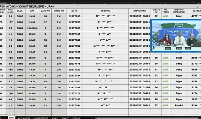 Buna göre 135 başvuru sahibi Mersin Aydıncık TOKİ kurasına katılarak konutları belirlenmiş oldu. Mersin Aydıncık TOKİ kura sonuçları isim sorgulama ekranı TOKİ resmi web sitesi ve e-devlet üzerinden görüntülenebiliyor.