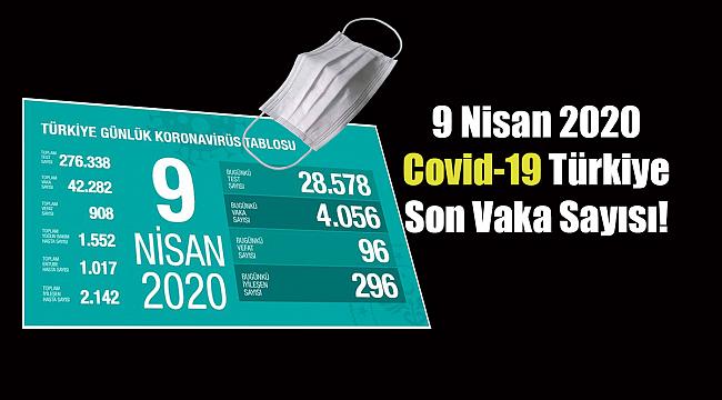 Koronavirüs (Covid-19) vaka sayılarına her yeni, gün yeni vakalar ekleniyor. Diğer taraftan ülkeler aşı geliştirme çalışmalarını sürdürüyor. Türkiye'de alınan son tedbirlerle birlikte virüsün yayılımının önüne geçilmesi adına hükümet ve Sağlık Bakanlığı atmaya devam ediyor. Bu kapsamda 9 Nisan tarihinde en son koronavirüs vaka sayıları yeniden güncellendi.