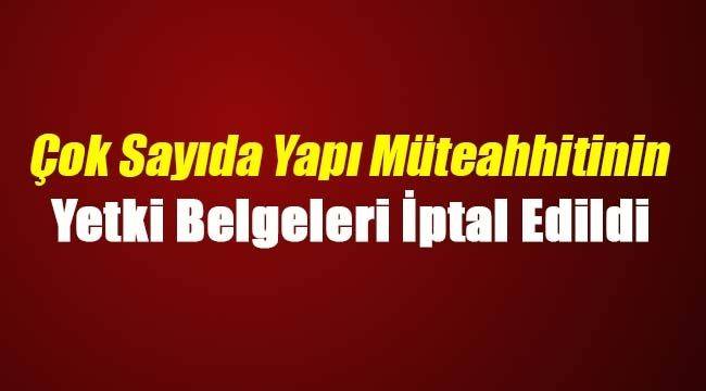 Türkiye genelinde faaliyette bulunan çok ayıda yapı müteahhitleri ile alakalı Bakanlık kararı ile yetki belgelerinin iptal edildiği duyuruldu. Karar Bu sabah Resmi Gazete'de yayımlanarak resmen yürülüğe girdi.