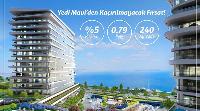 Başlatılan yeni satış kampanyası kapsamında ise Yedi Mavi projesinde sadece yüzde 5 peşinatla 240 ayda yüzde 0,79 oranında, anlaşmalı bankalardan konut kredisi kullandırılarak ev sahibi olunabiliyor.
