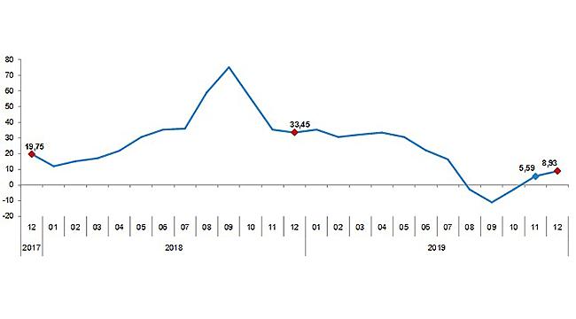 YD-ÜFE (2010=100) 2019 yılı Aralık ayında bir önceki aya göre %1,81, bir önceki yılın Aralık ayına göre %8,93, bir önceki yılın aynı ayına göre %8,93 ve on iki aylık ortalamalara göre %14,19 artış gösterdi.