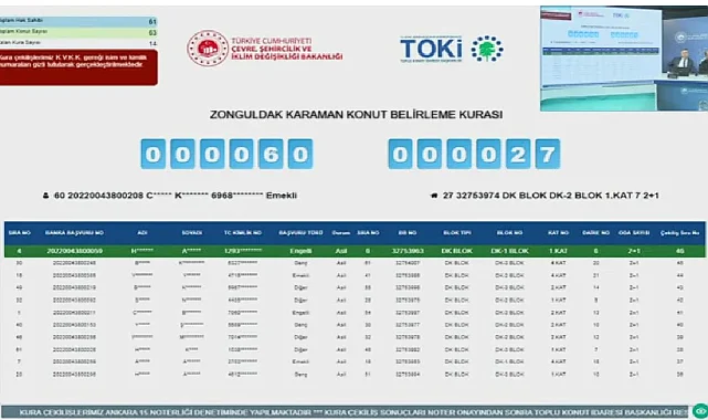 TOKİ ZONGULDAK KARAMAN KURA SONUÇLARI CANLI YAYIN