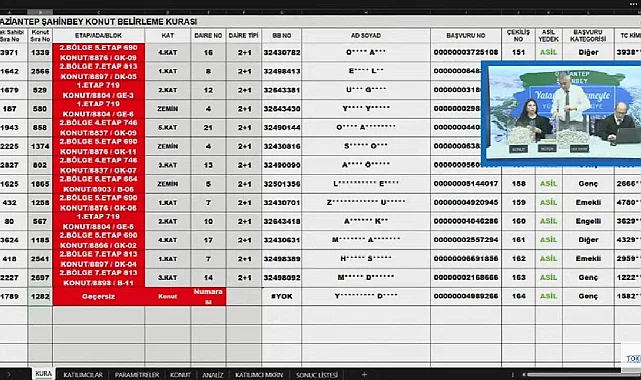 Gaziantep Şahinbey TOKİ konut belirleme kura çekilişi sonuçları isim listesi YouTube kanalı canlı yayın videosu üzerinden takip edilebilir.