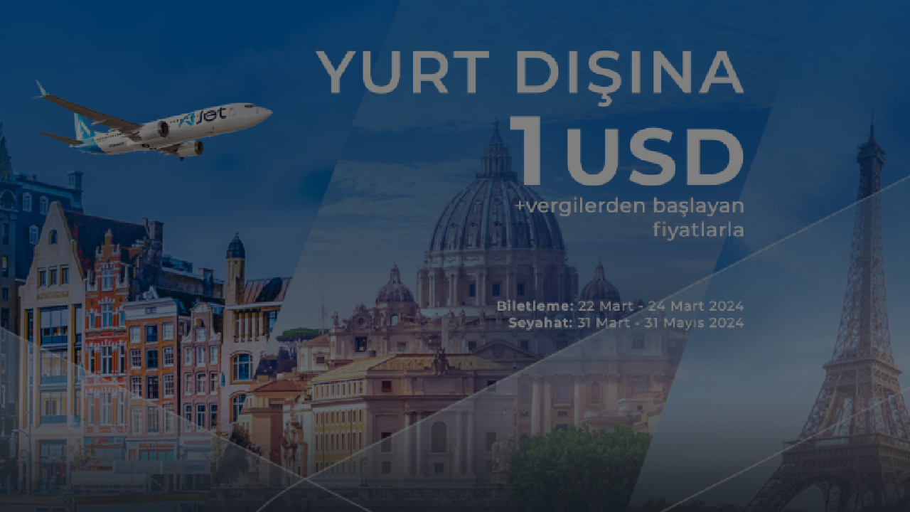 Ajet ucuz bilet satışları resmen başladı. 1 euro ve 1 dolar gibi rakamlarla ucuz uçak bileti kampanyası AJet ile...Ucuz uçak bileti kampanyası arayanlar için kaçırılmayacak fırsat Ajet ile geldi. Türk Hava Yolları (THY) yan kuruluşu olarak faaliyet gösteren ve eski ismi AnadoluJet olan AJet, Türkiye'den yurt dışına 1 dolar artı vergiler, yurt dışından Türkiye'ye 1 euro artı vergilerle alınabilecek bir kampanya başlattığını açıkladı. İşte son dakika AJET 1 dolar ve 1 euroya satılan biletlere dair ayrıntılar.AJet, 22-24 Mart 2024 tarihlerinde alınacak ve 31 Mart-31 Mayıs 2024 tarihleri arasında gerçekleştirilecek seyahatlerle ilgili kampanya başlattı. Kampanyalı biletler, Yurt dışına 1 dolar artı vergiler, yurt dışından Türkiye'ye uçuşlar içinse 1 euro artı vergilerden başlayan fiyatlarla satışa sunuldu.Türkiye'den yurt dışına (Kuzey Kıbrıs hariç) ve yurt dışından Türkiye'ye direkt uçuşlar kampanya kapsamında. 50 bin koltuk kontenjan ayrılan dev ucuz bilet kampanya kapsamında çok sayıda uçuş lokasyonu yer alıyor. İşte ucuza uçabileceğiniz lokasyonlar.