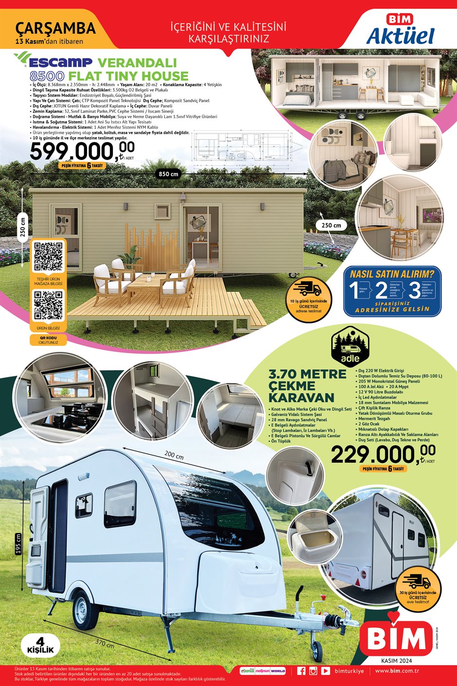 İşte 13 Kasım'da BİM Aktüel Ürünler Kataloğuna giren Tiny House modeli özellikleri ve garanti şartları;