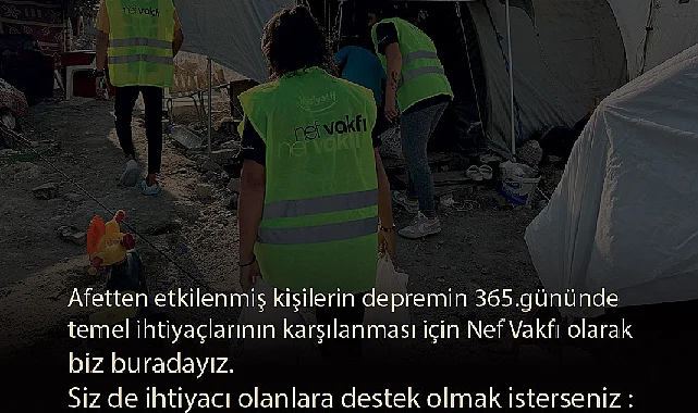 Kahramanmaraş merkezli depremlerin ardından bölgeye hızla ulaşan ve o günden bu yana insani yardım, aşevi, konteyner kent, psikososyal destek ve sosyal yardım alanlarında çalışmalarına devam eden Nef Vakfı, depremin birinci yıldönümünde de bölgeye desteklerini sürdürüyor.
