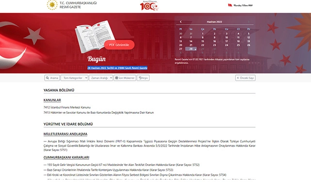 28 Haziran 2022 Tarihli ve 31880 Sayılı Resmî Gazete bu sabah yayımlanarak resmen yürürlüğe girdi. Peki bugün yayımlanan Resmi Gazete'de hangi kritik kararlar, yönetmelikler ve kararnameler yer aldı? İşte bugüne dair Resmi Gazete ayrıntıları.