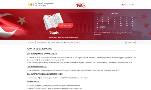 29 Mart 2022 Tarihli ve 31793 Sayılı Resmî Gazete