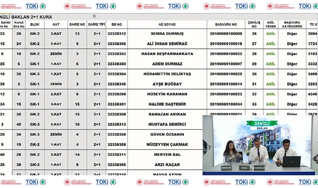 46 adet 2+1 konut için 40 başvuru, 48 adet 3+1 konut için ise 20 başvuru alınan TOKİ Denizli Baklan konut projesinde kura çekilişi ile hak sahipleri belirlenmiş oldu.