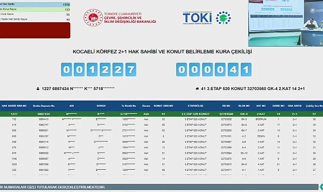 Aynı zamanda bugün Kocaeli iline bağlı Gebze Güzeller Mahallesi'nde yer alan evlerinde hak sahibi ve konut belirleme kura çekilişi gerçekleştirildi. 35 daireli 23 başvurulu Kocaeli Gebze kura çekilişi sonuçları açıklandı. Buradan Kocaeli Gebze Güzeller Mh. kura çekilişi haberini görebilir, canlı yayınını izleyebilirsiniz.